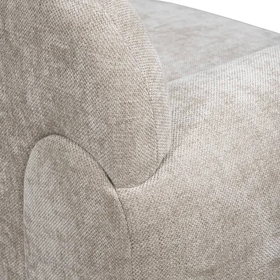 Mekani prelazi između naslona i rukohvata daju trosedu smiren, elegantan izgled koji prostoru donosi balans.